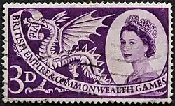 3 pence British stamp with theme of 1958 British Empire and Commonwealth Games, Cardiff, Wales