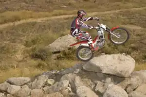 Known in the US as Observed Trials, it is not racing, but a sport nevertheless. Trials is a test of skill on a motorcycle whereby the rider attempts to traverse an observed section without placing a foot on the ground (and traditionally, although not always, without ceasing forward motion). The winner is the rider with the least penalty points.