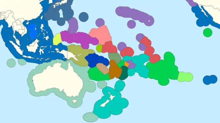 Depending on the definition, New Zealand could be part of Polynesia, or part of Australasia with Australia.[159] New Zealand was originally settled by the Polynesian Māori, and has long maintained a political influence over the subregion.[160][161] Through immigration and high Māori birth rates, New Zealand has attained the largest population of Polynesians in the world,[162] while Australia has the third largest Polynesian population (consisting entirely of immigrants). Modern-day Indigenous Australians are loosely related to Melanesians,[163][164] and Australia maintains political influence over Melanesia,[161] which is mostly located on the same tectonic plate.[61][62] Despite this, Australia is rarely seen as a part of the subregion.[165][166] As with Australia and New Zealand, Melanesia's New Caledonia has a significant non-indigenous European population, numbering around 71,000.[167] Conversely, New Caledonia has still had a similar history to the rest of Melanesia, and their French-speaking Europeans make up only 27% of the total population.[167][168] As such, it is not also culturally considered a part of the predominantly English-speaking Australasia.[169] Some cultural and political definitions of Australasia include most or all of Melanesia, due to its geographical proximity to Australia and New Zealand, but these are rare.[170] Australia, New Zealand and the islands of Melanesia are more commonly grouped together as part of the Australasian biogeographical realm.[171] Papua New Guinea is geographically the closest country to Australia, and is often geologically associated with Australia as it was once physiologically connected.[72] Australia's Indian Ocean external territories of Christmas Island and Cocos (Keeling) Islands are situated within the bounds of the Australian Plate and have been geographically associated with Southeast Asia, due to their proximity to western Indonesia.[172][173][174][175][176] Both were uninhabited when discovered by Europeans during the 17th century. Approximately half of the population on these islands are European Australian mainlanders (with smaller numbers being European New Zealanders), while the other half are immigrants from China or the nearby Malay Archipelago.[177][178] Australia's Indian Ocean external territory Heard Island and McDonald Islands lie on the Antarctic Plate and are also thought of as being in Antarctica or no region at all, due to their extreme geographical isolation.[179][72] The World Factbook define Heard Island and McDonald Islands as part of Antarctica, while placing Christmas Island and Cocos (Keeling) Islands as the westernmost extent of Oceania.[180][181]